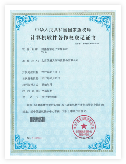 北京国盛文体科教装备有限公司,成立于2000年,注册资本 2050万元,是经北京市工商行政管理局批准成立,具有独立法人资格,专业从事纸质图书发行、数字图书馆建设、教学仪器设备、智慧班牌、智慧课堂、智慧校园整体解决方案等一系列产品的研发与销售的大型教育装备企业。